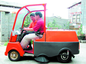 3年來,他們相繼從家中拿出了準(zhǔn)備買新房的近30萬(wàn)元積蓄用于研究。2008年底,經(jīng)過多次改裝和調(diào)試,一輛“摩托掃地車”應(yīng)運(yùn)而生。2009年暑假,第一代小型電動(dòng)清掃車終于問世。