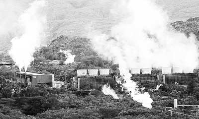圖為肯尼亞裂谷省的歐卡瑞地?zé)犭姀S。該地?zé)犭姀S二期擴建工程目前已經(jīng)完成了70%的地?zé)峋@探工作,新的地?zé)峋A(yù)計將在兩年內(nèi)產(chǎn)生280兆瓦的電能?夏醽啅1981年開始開發(fā)地?zé)豳Y源以來,共鉆探了33口地?zé)峋。由于地(zé)豳Y源不受氣候因素影響,發(fā)電價格不受國際原油價格波動的干擾,地?zé)岚l(fā)電是肯尼亞目前最便宜的發(fā)電方式?夏醽喌?zé)岚l(fā)電資源非常豐富,共有7000兆瓦的地?zé)岚l(fā)電潛力。