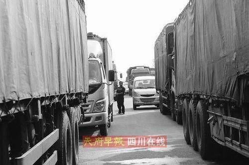 成都某物流基地車場管理員王興順發(fā)現(xiàn),從10月中旬開始,車場內(nèi)停的車越來越多,截至昨天上午11點,車場內(nèi)停了1500多輛車,“從開張以來,就沒有見過這樣的情況!蓖跖d順說,從上個月開始,調(diào)度室里熱鬧不起來了,司機們運完貨回到車場,“都找地方玩去了!
