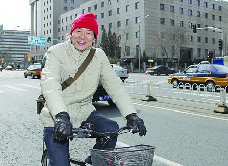 看記者正在拍照,讓他配合一下,他咧嘴笑了,然后騎上車離開(kāi)了。離開(kāi)前,記者說(shuō),您出行很環(huán)保!他開(kāi)玩笑說(shuō),就算低碳一次吧。(記者 郭靜)