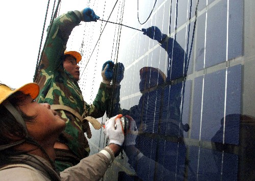 太陽能方面,2009年中國光伏電池年產(chǎn)量約占全球產(chǎn)量的40%,連續(xù)三年居世界第一,為世界太陽能光伏發(fā)電作出了重要貢獻(xiàn),通過國家能源局公開招標(biāo)的甘肅敦煌10兆瓦光伏發(fā)電項(xiàng)目也正在建設(shè)之中。