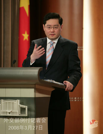 中新網(wǎng)3月27日電 據(jù)外交部網(wǎng)站消息,2008年3月27日下午,外交部發(fā)言人秦剛在例行記者會上答問時否認中國政府要派人去澳大利亞保護奧運火炬?zhèn)鬟f。