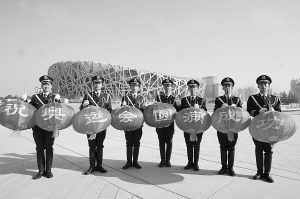 “好運(yùn)北京”2008年中國(guó)游泳公開(kāi)賽在國(guó)家游泳中心“水立方”拉開(kāi)帷幕。盡管游泳館里的助威聲不絕于耳,但擔(dān)任場(chǎng)外警戒任務(wù)的官兵依然全神貫注地站在哨位上。討論中,說(shuō)起當(dāng)時(shí)的感受,在停車場(chǎng)執(zhí)勤的一級(jí)士官齊健說(shuō):“雖然我很想走進(jìn)賽場(chǎng)觀看比賽,但我更清楚自己的職責(zé)。過(guò)些天,北京奧運(yùn)會(huì)召開(kāi)時(shí),如果我依然被安排在場(chǎng)外執(zhí)勤,我會(huì)以更高的標(biāo)準(zhǔn)完成任務(wù)。守好自己的哨位,確保奧運(yùn)安全,就是為國(guó)爭(zhēng)光!