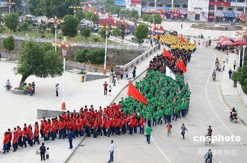 圖:江西德興礦工健步行迎奧運(yùn)
