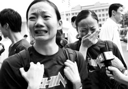 “花泳姊妹花”蔣雯雯、蔣婷婷是四川人,她們的家人在地震中平安,但想到遇難的同胞,姐妹倆失聲痛哭。