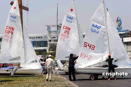 為迎戰(zhàn)二00八北京奧運(yùn)會(huì)帆船比賽,美國(guó)帆船對(duì)已于近日來(lái)到奧運(yùn)會(huì)帆船賽舉辦城市青島的奧帆賽訓(xùn)練基地,進(jìn)行賽前的場(chǎng)地適應(yīng)性訓(xùn)練。圖為美國(guó)帆船隊(duì)的隊(duì)員們準(zhǔn)備下海訓(xùn)練。 中新社發(fā) 曲連遵 攝