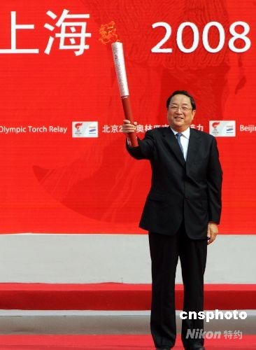 5月23日,中共中央政治局委員,中共上海市委書記俞正聲,出席北京奧運會圣火上海傳遞起跑儀式。 中新社發(fā) 湯彥俊 攝