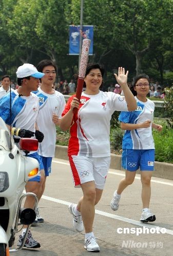 圖:女排名宿在滬傳遞奧運(yùn)圣火