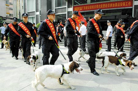 據(jù)悉,此次公安部從全國公安系統(tǒng)選調(diào)204名帶犬民警、204頭搜爆犬參加奧運(yùn)安保工作,廣東抽調(diào)的數(shù)量最多。目前廣東共有16個(gè)地級(jí)市公安機(jī)關(guān)建立了警犬機(jī)構(gòu),擁有警用工作犬769頭,占全國警犬?dāng)?shù)量的1/6。