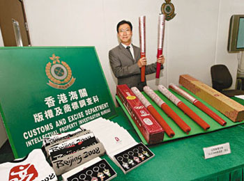 趙育雄重申,海關(guān)一向致力與奧委會合作,打擊一切侵權(quán)活動。根據(jù)紀(jì)錄,2005年至今,海關(guān)一共破獲16宗涉及“2008北京奧運(yùn)會”商品的侵權(quán)案,檢獲大批侵權(quán)鎖匙扣、手表、襟章、貼紙及衣服等,共值3.2萬元。至于偽冒的“祥云火炬”則是首次檢獲。
