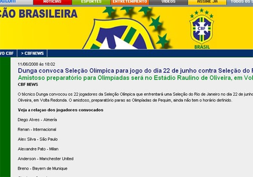 中新網(wǎng)6月12日電 巴西國奧隊主教練鄧加公布了巴西國奧隊友誼賽名單,6月22日巴西國奧隊將進(jìn)行一場熱身賽,拉開備戰(zhàn)北京奧運會男足比賽的帷幕。