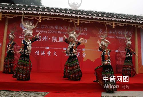 火炬從郎德上寨出發(fā)后,將沿著美麗的巴拉河傳遞,先后經(jīng)過(guò)依山傍水的季刀苗寨、南花苗寨、三棵樹(shù)苗寨,充分展示黔東南的民族風(fēng)情。這是奧運(yùn)火炬自中國(guó)境內(nèi)傳遞以來(lái)最具民族特色的一段路線。