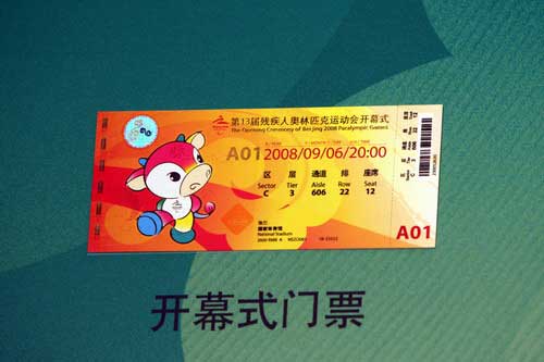 殘奧門票包括殘奧會開幕式門票、閉幕式門票、體育比賽紀(jì)念票、熱敏票,大體的方式跟奧運會的類別是一樣的。不過,設(shè)計體現(xiàn)殘奧會的精神,開、閉幕式主要圖案是殘奧會的吉祥物,即以“福牛樂樂”為主要的元素。