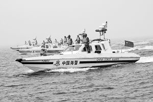 “前方快艇,我是中國海警執(zhí)勤艇,你已闖入我執(zhí)勤警戒區(qū)域,請立即停船接受檢查,請立即停船接受檢查!”