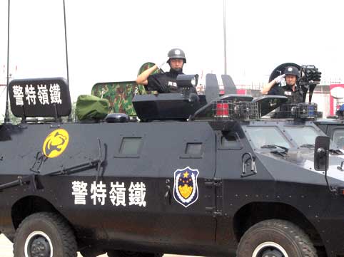 出警儀式上,遼寧省公安廳、沈陽軍區(qū)、遼寧省武警總隊等單位進行了力量集結(jié)拉動展示。1326名隊員齊聲高呼著口號,迅速開始登車。寬闊的跑道上警燈閃爍,精神飽滿的公安特警方隊,整齊威武的武警持槍方隊,軍容嚴(yán)整的人民解放軍方隊以及由特種裝備車、輕型裝甲車、運兵車、照明車、防化車、特種偵察車、炊事車、特戰(zhàn)車、防彈車、突擊沖鋒車、水炮車、宿營運兵車、裝甲運兵車、防核生化車等119臺車輛組成的共26支方隊依次通過主席臺,經(jīng)過市區(qū)主要街路,駛往沈陽奧體中心。