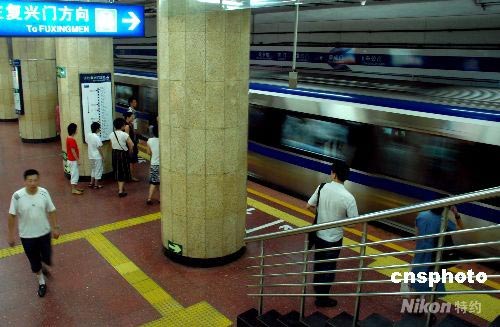 7月14日,一列地鐵駛?cè)氡本┑罔F阜成門(mén)站。據(jù)北京市交通委相關(guān)負(fù)責(zé)人介紹,北京地鐵運(yùn)營(yíng)部門(mén)考慮到奧運(yùn)會(huì)開(kāi)閉幕式結(jié)束時(shí)間較晚、客流量加大的實(shí)際情況,地鐵將采取24小時(shí)運(yùn)營(yíng)。地鐵10號(hào)線一期、奧運(yùn)支線、機(jī)場(chǎng)線已完成工程建設(shè)和設(shè)備調(diào)試,即將開(kāi)通試運(yùn)營(yíng)。預(yù)計(jì)開(kāi)通試運(yùn)營(yíng)時(shí)間將定在7月20日之前,三條新線會(huì)在一天同時(shí)開(kāi)通試運(yùn)營(yíng)。中新社發(fā) 楊慧峰 攝