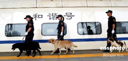 7月14日,沈陽鐵路公安處警犬基地的3只搜爆犬正式投入沈鐵公安的奧運(yùn)安保工作中。據(jù)了解沈陽鐵路公安處警犬基地共有37只警犬,其中大部分為德國(guó)牧羊犬,承擔(dān)著巡線護(hù)線任務(wù),這次投入搜爆、安檢工作的主要為史賓格、拉布拉多等犬種,它們將在奧運(yùn)安保期間負(fù)責(zé)站臺(tái)、貴賓室等重要地點(diǎn)的安檢及搜爆工作,以確保鐵路的安全。中新社發(fā) 趙敬東 攝