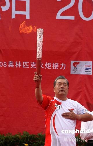 7月17日,北京奧運(yùn)火炬在沈陽傳遞,第一棒火炬手是“中國奧運(yùn)第一人”劉長春的次子劉鴻圖。三個(gè)月前,他的哥哥劉鴻亮參加了北京奧運(yùn)火炬在希臘的傳遞活動。劉鴻圖接過第一棒火炬后,手撫胸口閉目默念。他在接受記者采訪時(shí)說,他用這種方式告慰先父,由他開啟的中國人的百年奧運(yùn)夢想終于實(shí)現(xiàn)了。中新社發(fā) 周兆軍 攝