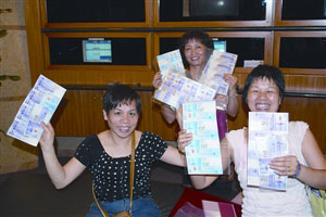 圖:澳門市民鈔票在手,笑逐顏開。(圖片來源:澳門日報)