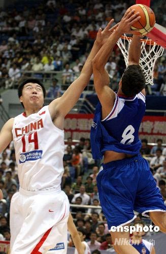 圖:中國隊(duì)勝塞爾維亞隊(duì) 王郅治得分冠全場