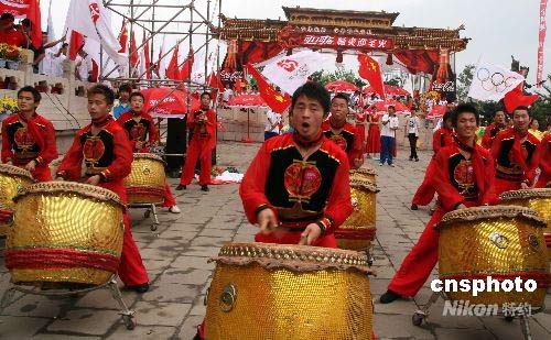 圖:大連威風(fēng)鑼鼓迎接奧運(yùn)火炬