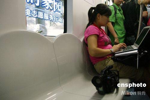 據(jù)地鐵工作人員介紹,地鐵10號線新車的座椅靠背升高了15到20厘米,而且是圓弧形的,乘客乘坐起來將更加舒適。中新社發(fā) 富田 攝