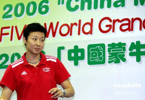 2006年8月16日,前來(lái)香港參加世界女排大獎(jiǎng)賽的中國(guó)女排隊(duì)長(zhǎng)馮坤登臺(tái)亮相。中新社發(fā) 洪少葵 攝