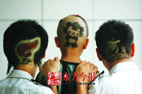 鄭州街頭三名男孩的奧運發(fā)型格外搶眼(圖)