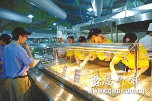 實景:餐廳也是奧運村里的主題。奧運村的主餐廳位于北部國際區(qū)的東側(cè),分為運動員餐廳和員工餐廳,在奧運賽時提供24小時的餐飲服務(wù)。走進(jìn)運動員餐廳,第一個感覺就是大,放眼望去,四周密密麻麻都是桌椅。據(jù)介紹說,賽時主餐廳可以同時容納5000人就餐。整個餐廳設(shè)有四大餐區(qū):國際餐區(qū)、地中海餐區(qū)、亞洲餐區(qū)及中國餐區(qū)。地中海餐區(qū)的意大利面和清蒸魚,味道還比較爽口,非常適合歐洲人。在餐廳內(nèi),人們還驚喜地發(fā)現(xiàn)了中國的特色食品——全聚德的烤鴨。據(jù)介紹,奧運村開村后,餐廳內(nèi)的每一道菜品都會配有營養(yǎng)卡,用中英法三種文字標(biāo)識,將標(biāo)注食品的原材料構(gòu)成,菜品的營養(yǎng)程度,食品所含卡路里等。