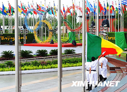 7月29日,貝寧國旗升起。 當日,貝寧奧運代表團在北京奧運村舉行升旗儀式。