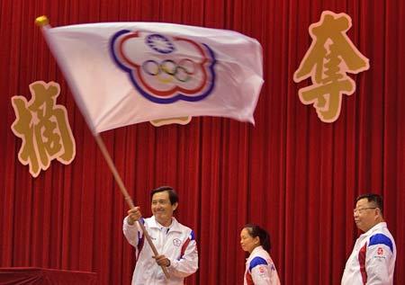 7月30日,馬英九在高雄向出席北京奧運(yùn)的中華臺(tái)北隊(duì)授旗。