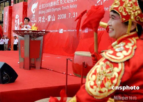 圖:唐山市長點(diǎn)燃圣火盆河北傳遞結(jié)束