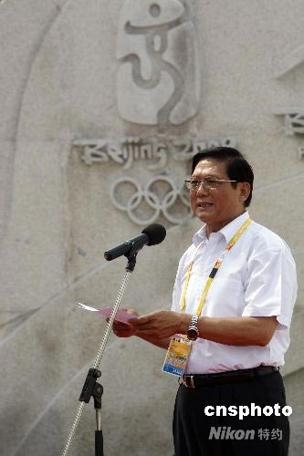 8月1日,北京奧運(yùn)村“和平友誼墻”正式啟動。圖為北京奧組委主席劉淇在啟動儀式上致詞。中新社發(fā) 杜洋 攝