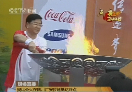 8月3日上午,二00八北京奧運(yùn)會(huì)火炬在鄧小平的家鄉(xiāng)——廣安傳遞,廣安也是奧運(yùn)火炬在四川傳遞的首站。此次傳遞全程七點(diǎn)三公里,共有一百八十九名火炬手參與傳遞,其中年齡最大的八十五歲,最小的十五歲。9時(shí)15分火炬到達(dá)終點(diǎn)廣安會(huì)展中心,末棒火炬手王建軍點(diǎn)燃圣火盆。