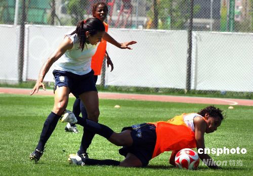 8月3日,巴西女足靈魂隊(duì)員瑪塔(左)與隊(duì)友在訓(xùn)練中。當(dāng)日,巴西女足隊(duì)員在沈陽奧體中心訓(xùn)練場(chǎng)進(jìn)行訓(xùn)練。6日,巴西女足將在奧運(yùn)會(huì)女足比賽小組賽中對(duì)陣德國女足。中新社發(fā) 張宇 攝
