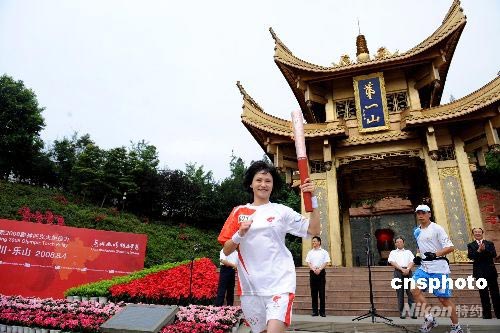 8月4日上午,北京奧運火炬開始了在四川樂山市的傳遞,這是四川省境內(nèi)傳遞的第2站。首棒火炬手是兩度獲得奧運會冠軍,開創(chuàng)跳水界“高敏時代”的“跳水皇后”高敏。當(dāng)日下午,奧運火炬將在綿陽九州體育館和廣漢三星堆進行展示。中新社發(fā) 廖攀 攝