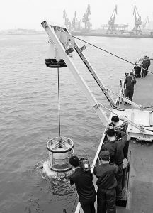 “吊放圖像聲納,開(kāi)始搜索可疑目標(biāo)!”一聲令下,一種專(zhuān)門(mén)用于水下探測(cè)的小型多功能、高分辨率圖像聲納,在4名官兵的熟練操作下緩緩入水。