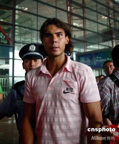 8月4日,有著“紅土之王”稱號(hào)的西班牙網(wǎng)球名將納達(dá)爾抵京,開始北京奧運(yùn)會(huì)征程。中新社發(fā) 富田 攝