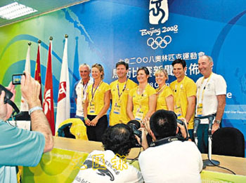 澳大利亞馬術(shù)三項賽隊員5日引來不少傳媒采訪。(圖片來源:文匯報)