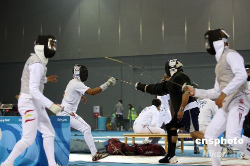 圖:埃及擊劍選手“頭頂五環(huán)”觀看訓練
