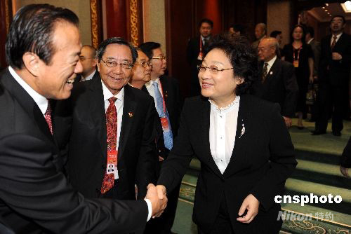 國僑辦主任李海峰、全國人大華僑委員會副主任委員陳玉杰共同舉杯歡迎華人華僑代表。