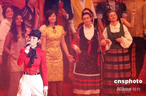 八月八日,香港特區(qū)政府在沙田賽場舉行盛大歡迎晚會(huì)上,歡迎來自世界各地參加奧運(yùn)馬術(shù)比賽的參賽隊(duì)伍。圖為著名歌星陳慧琳在晚會(huì)上高歌。 中新社發(fā) 洪少葵 攝