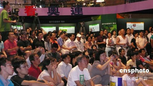 八月八日,舉世矚目的北京奧運(yùn)會(huì)壯麗登場(chǎng),成千上萬(wàn)的臺(tái)灣民眾在家中、餐館或街頭大屏幕下,準(zhǔn)時(shí)收看晚八時(shí)零八分開(kāi)始的奧運(yùn)開(kāi)幕式。有媒體形容這是一場(chǎng)“視聽(tīng)饗宴”。圖為臺(tái)北市京華城購(gòu)物中心內(nèi),民眾席地而坐觀看開(kāi)幕演出。中新社發(fā) 曾嘉 攝