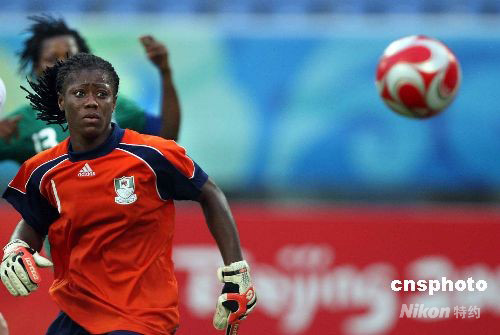 圖為尼日利亞4號(hào)佩爾佩圖阿·恩闊莎頭球攻門。