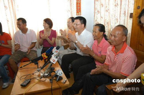 圖為各大媒體記者采訪陳燮霞父親。中新社發(fā) 袁宏偉 攝