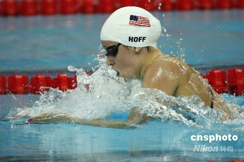 女子400米個人混合泳世界紀錄保持者、在美國泳壇同菲爾普斯并稱“金童玉女”的凱蒂·霍夫順利晉級半決賽。 中新社發(fā) 杜洋 攝