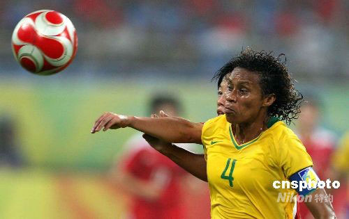 圖:巴西隊隊長塔尼婭頭球爭頂