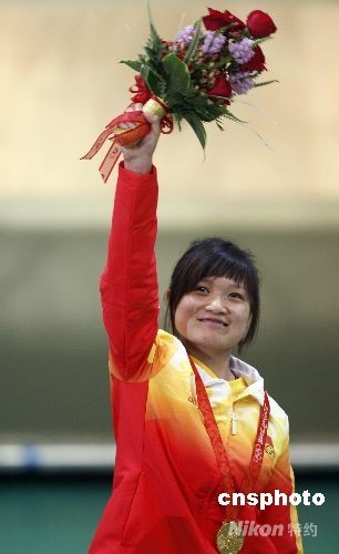 在剛剛結(jié)束的北京奧運(yùn)會(huì)女子10米氣手槍決賽中,中國(guó)選手郭文珺奪得冠軍。這是中國(guó)軍團(tuán)在本屆奧運(yùn)會(huì)上獲得的第三塊金牌。中新社記者 盛佳鵬 攝