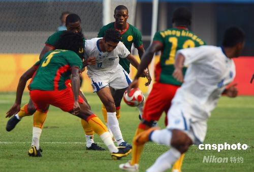 8月10日,北京奧運(yùn)會男足預(yù)賽,在秦皇島奧體中心“非洲雄獅”喀麥隆對陣洪都拉斯。 中新社發(fā) 劉新 攝