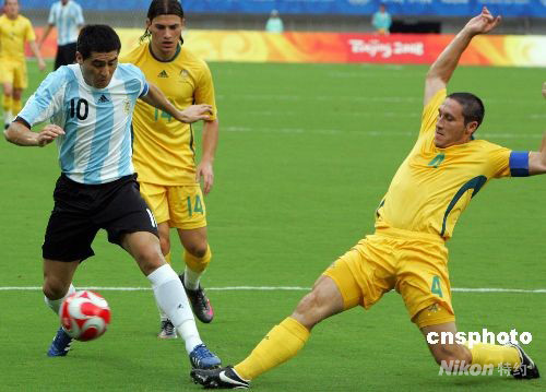 8月10日,北京奧運(yùn)會(huì)上海足球分賽場(chǎng)男足小組賽A組第二輪,阿根廷VS澳大利亞的比賽在上海體育場(chǎng)進(jìn)行,最終,阿根廷隊(duì)以1:0戰(zhàn)勝澳大利亞迎來(lái)二連勝,率先從小組出線。 中新社發(fā) 湯彥俊 攝